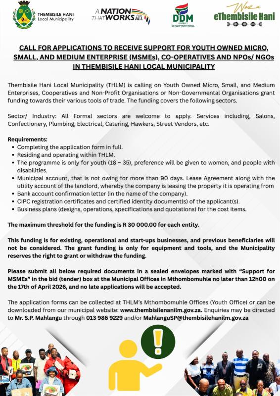 PUBLIC NOTICE: SUPPORT FOR YOUTH OWNED ENTERPRISES(MSME'S)